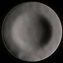 After 30 more minutes with 30% overhang, the shape has propagated more. The knife edge halfway between center shows that this zone has moved outwards slightly. The center now gets a bit too shallow, so strokes should get some more overhang. To prevent the roughness visible in this central area (rings caused by 40% and 30% overhang circles) the overhang should be varied a bit more. I guess between 25% and 45% or so, need to learn on the job. Also it is about time for a first foucault measurement; required is a 7-zone mask (37, 58, 73, 86, 97, 107, 116, 124 mm).
