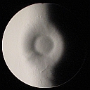 There are some scratches and smudges visible, due to the shape being close to spherical. This is the NULL of the mirror, which means that abberations become more obvious in the test image. Some scratches may go away during the correction phase, or at least become less apparent.