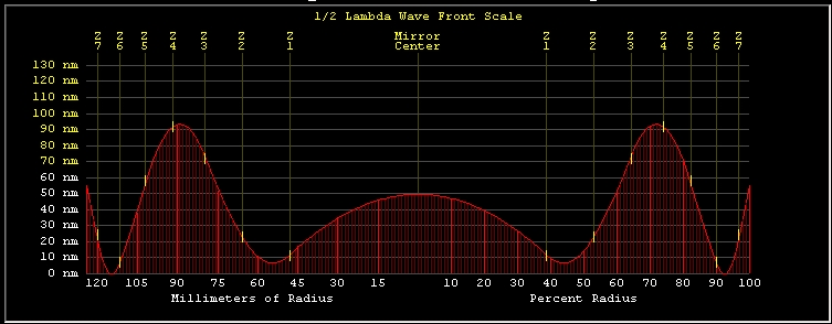 Correction is decreasing in outer zones, a trench has formed 10% from edge, center flower has no apparent effect. Need some more overhang MOT to restore correction to parabola. Maybe ignore center since it is behind 78mm secondary.